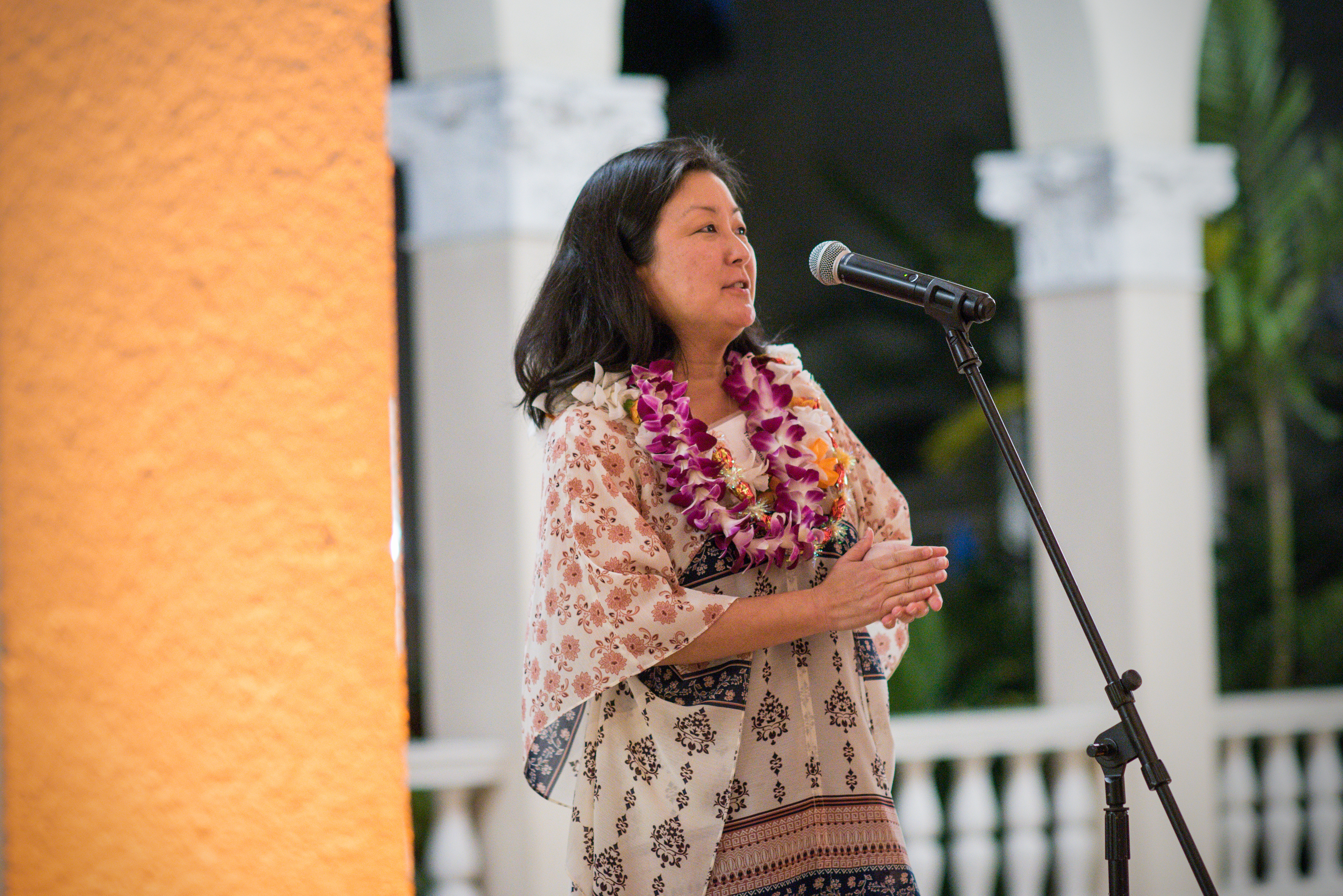 Tracy Tonaki speaking at the 2022 LeaderLuncheon Meet & Greet on May 8, 2022.